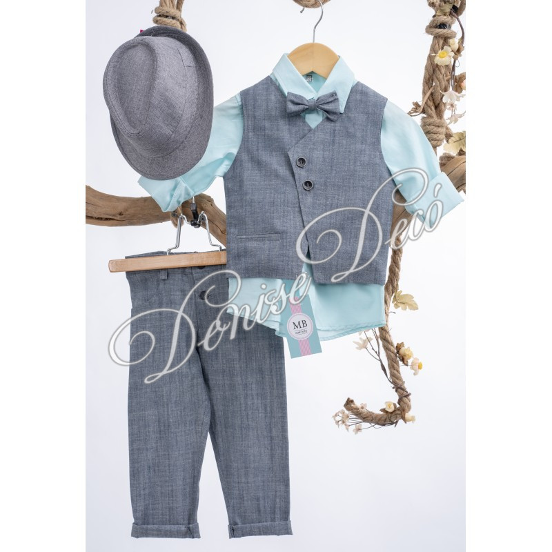 Βαπτιστικο σετ το οποιο αποτελειτε απο Παντελονι,ποκαμισο,γιλεκο καπελο γραβατα ή παπιον και καπελακι