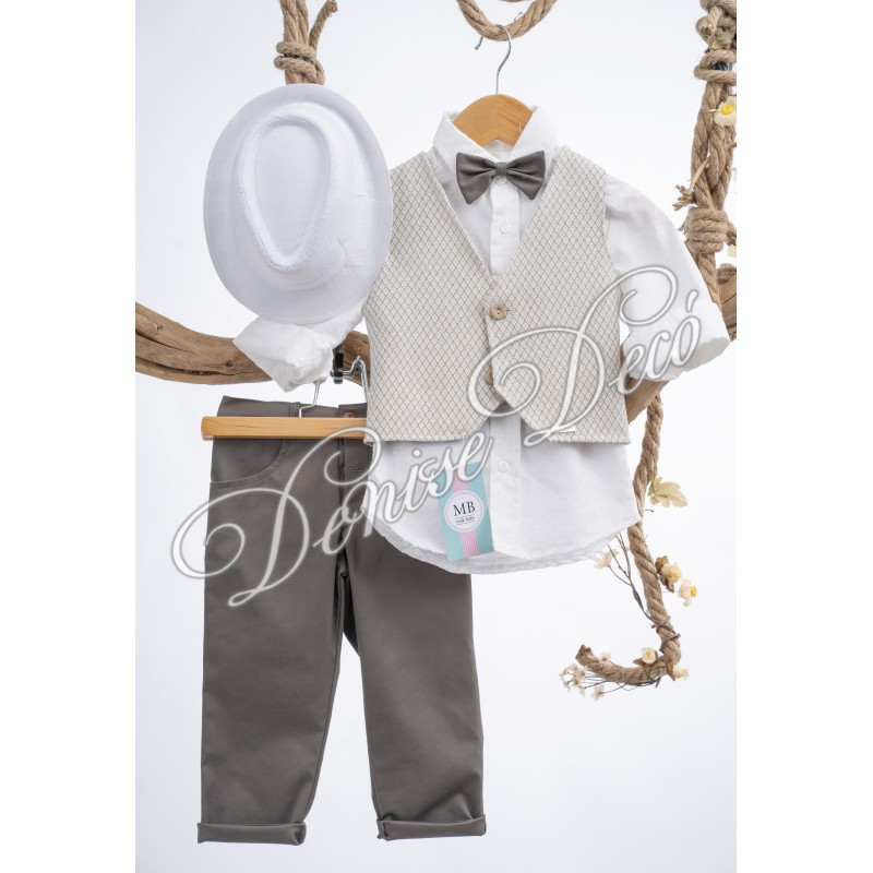 Βαπτιστικο σετ το οποιο αποτελειτε απο Παντελονι,ποκαμισο,γιλεκο καπελο γραβατα ή παπιον και καπελακι