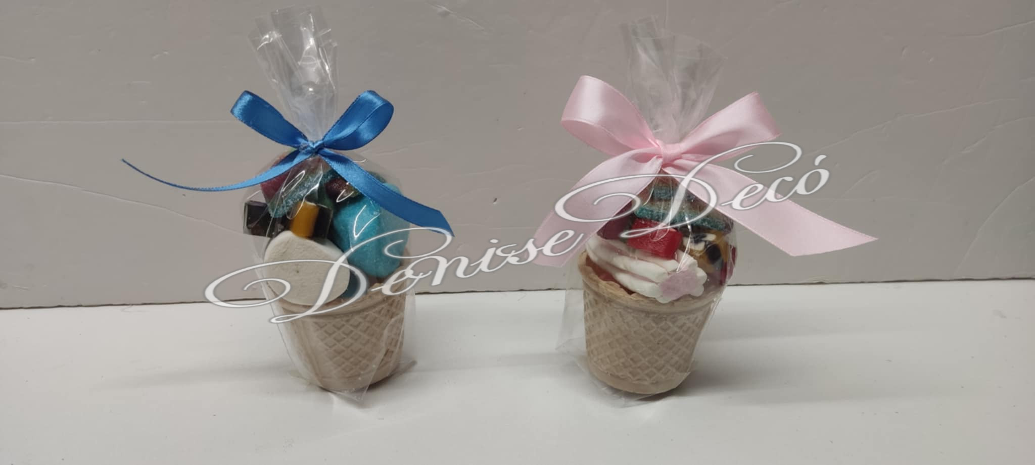 Ζαχαρωτα σε χωνακι παγωτου που αποτελειται απο ζελεδακια και Marshmallow,κουφετακια δημητριακων,σμαρτις και διαφορα ακομα ζαχαρωτων εποχης δινοντας μια εντυπωσιακη εικονα στο τραπεζι ζαχαρωτων τον καλεσμενων σας και ενθουσιασμο στους μικρους καλεσμενουςν σας. Θα δημιουργησουμε για εσας τα κερασματα σας βαση το φυλλο του παιδιου και θα ταιριαξουμε τους αντιστοιχους χρωματισμους στο κορδελακι