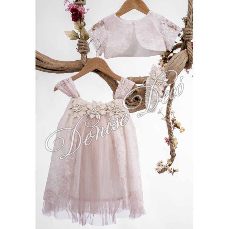 Βαπτιστικο σετ το οποιο αποτελειτε απο Φορεματακι και αξεσουαρ μαλλιων