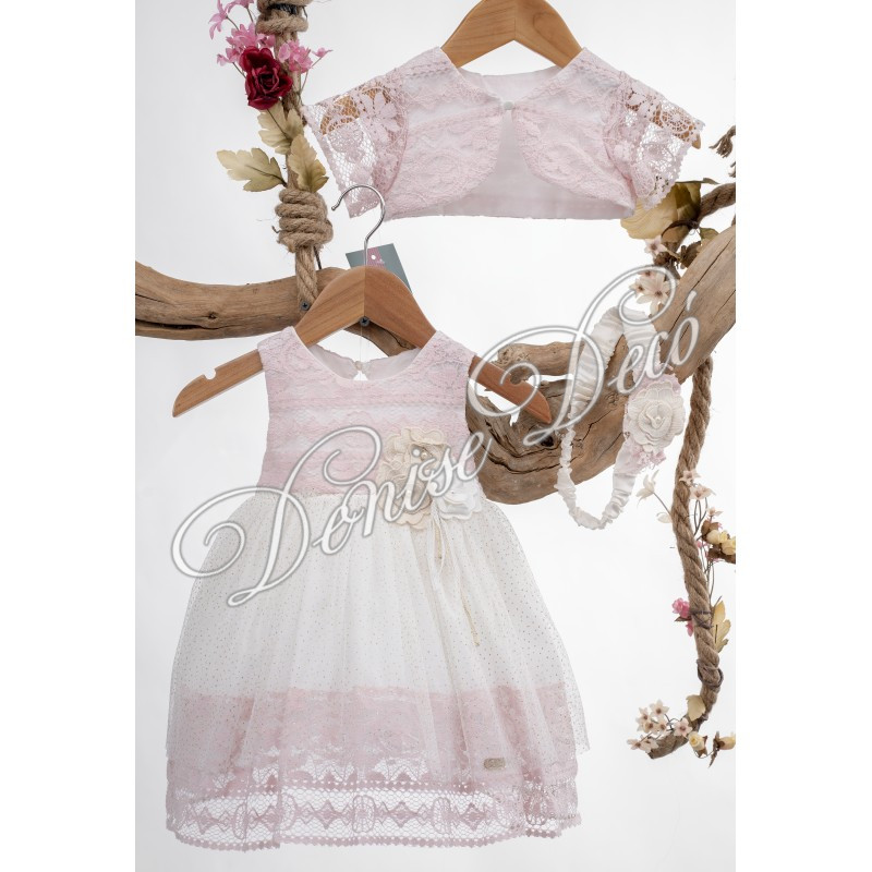 Βαπτιστικο σετ το οποιο αποτελειτε απο Φορεματακι και αξεσουαρ μαλλιων