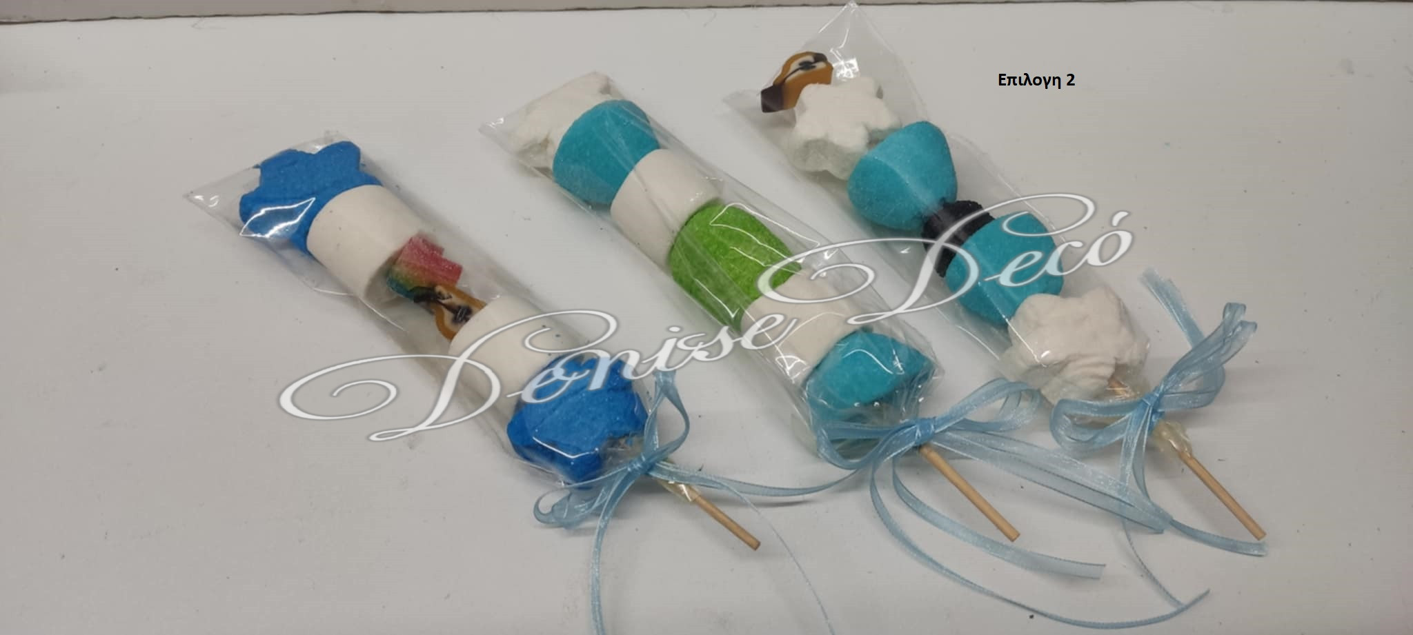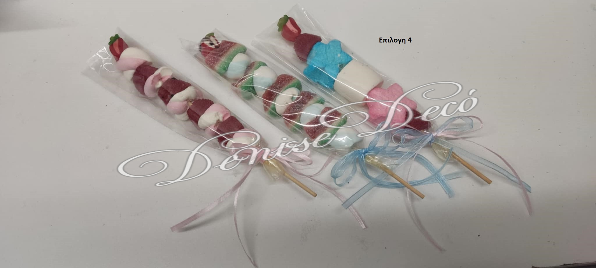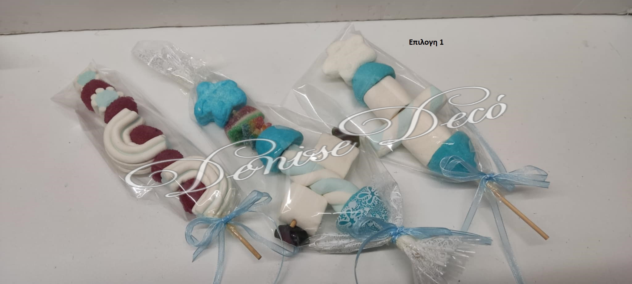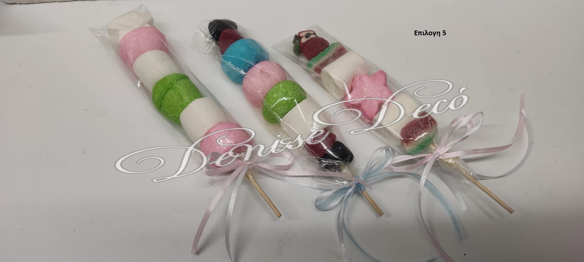 Στικ Ζαχαρωτων που αποτελειται ζελεδακια και Marshmallow, δινοντας μια εντυπωσιακη εικονα στο τραπεζι ζαχαρωτων τον καλεσμενων σας και ενθουσιασμο στους μικρους καλεσμενουςν σας. υπαρχουν διαθεσιμες επιλογες στην επιλογη σας βαση της εικονας που σας αρεσει